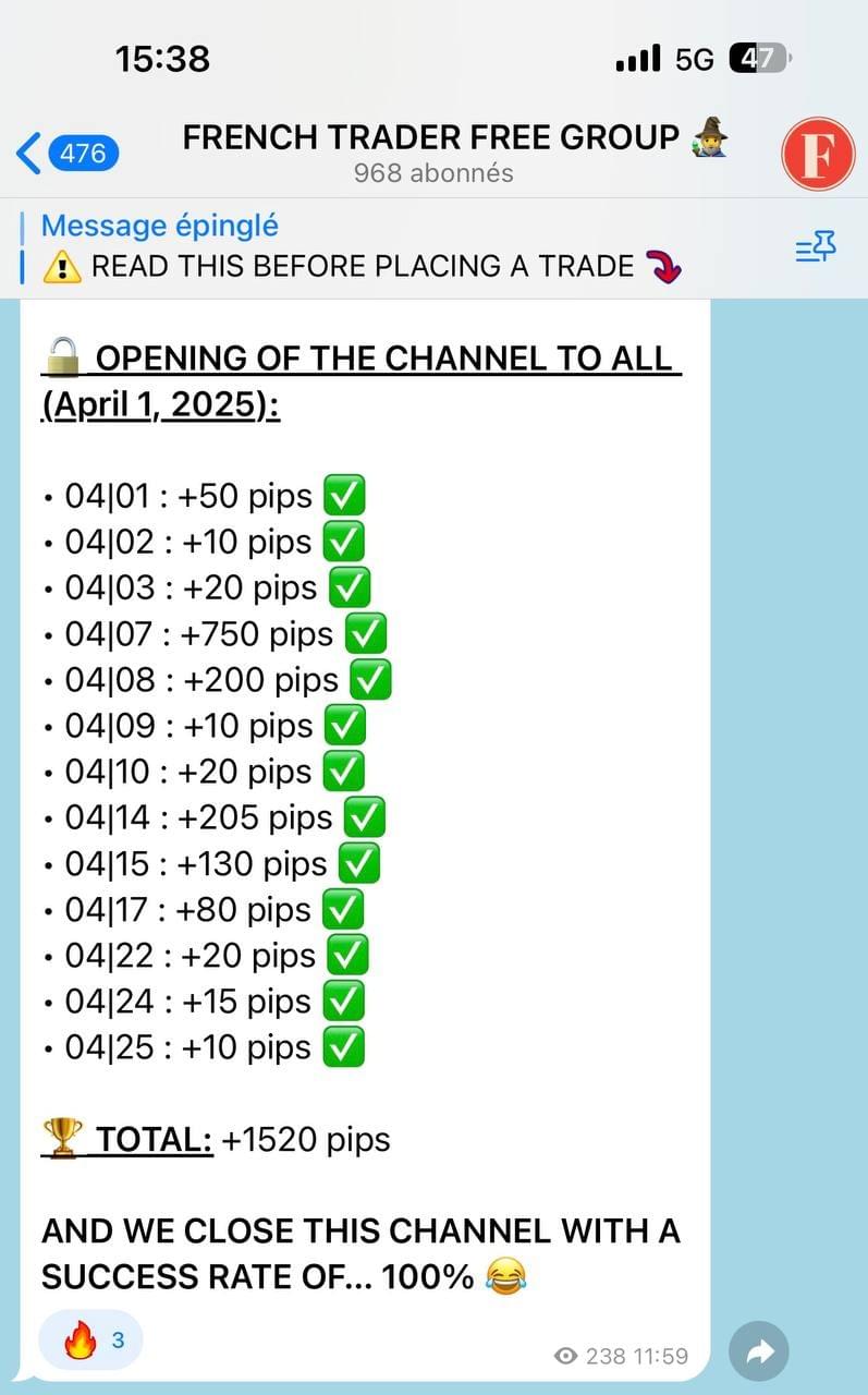 I opened a channel where I shared my trades with you for free for one month. The result: 1,520 pips without a single loss, to show you my legitimacy without asking for a single euro. "Men don't lie, numbers don't lie." I've amply proven what I'm capable of, with winning trades and six-figure withdrawals on my MT4 account.